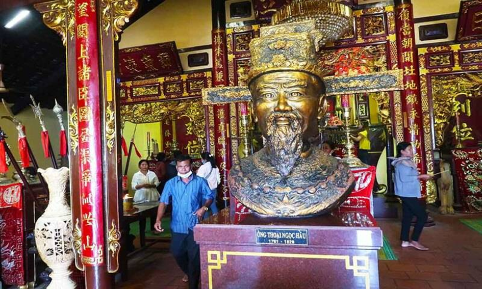 Thoai Ngoc Hau Temple with his bust in full robe and crown creates a very solemn atmosphere.