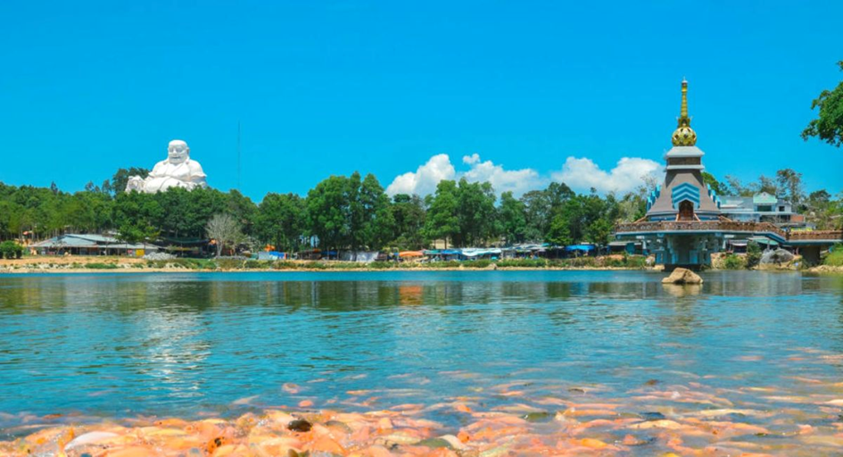While there, you can visit the nine-tiered bell tower at Van Linh Pagoda, pay respects to the giant Buddha Maitreya statue at Phat Lon Pagoda, relax by the serene Thuy Liem Lake, and enjoy a panoramic view of Chau Doc City from Vo Bo Hong. For more entertainment, head to the Thanh Long Water Park for a day of fun.