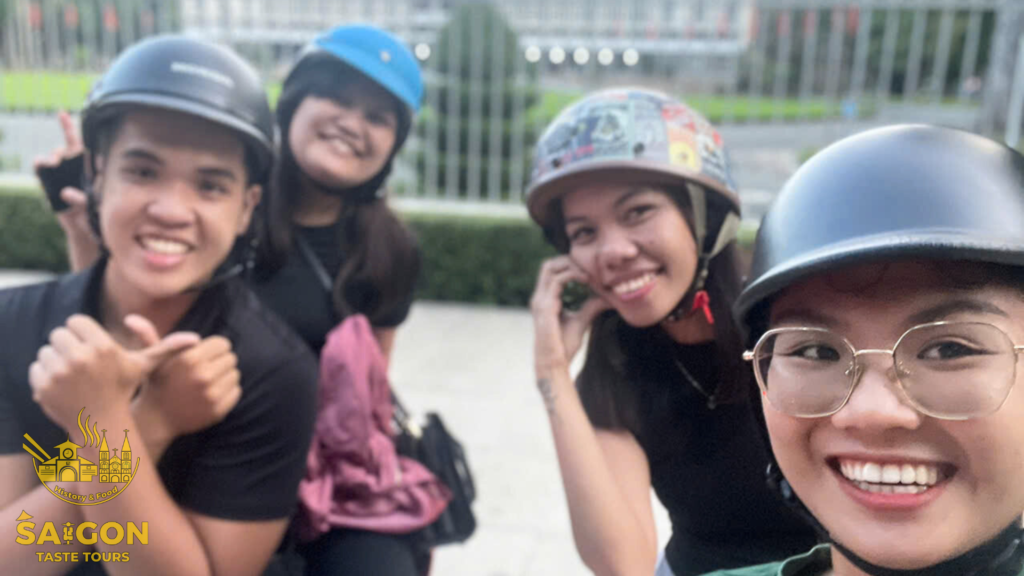 We had an amazing group of 11 guests from the Philippines who joined us for a 4-hour scooter sightseeing tour to explore the beauty of Ho Chi Minh City. To add more fun to the experience, I brought along a karaoke speaker for the group. Alvan was the only one brave enough to sing many songs while riding on the back of my scooter—what a star! The rest of the group was still a bit shy, possibly because it was their first time visiting Vietnam, and everything was so new to them. But no worries! Let’s give a big cheer for Evan and show him some love with a round of applause. Bravo, Alvan