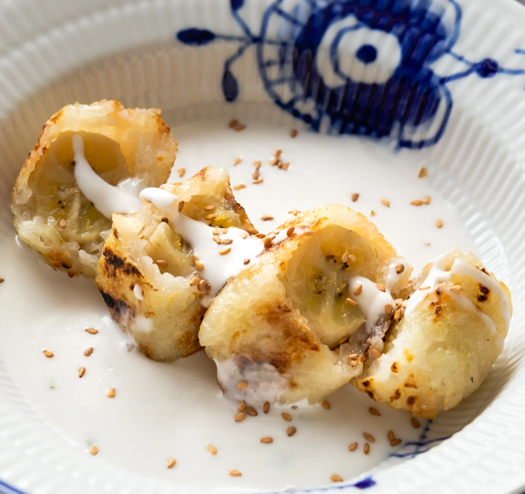 -Grilled Banana with Coconut Sauce – Master the balance of sweet and salty by grilling bananas and making a rich, creamy coconut sauce.