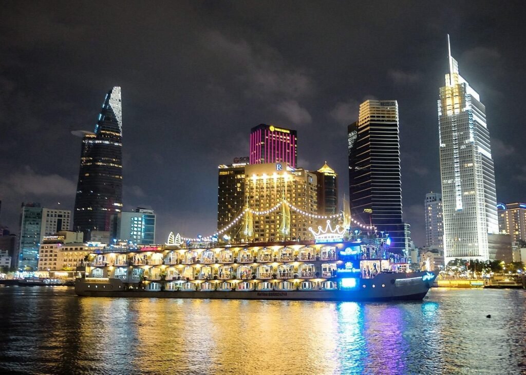 Book in advance to guarantee your preferred date and embark on a scenic dinner-and-sightseeing cruise along the Saigon River in Ho Chi Minh City. Step aboard a charming traditional or modern riverboat and glide past the city’s illuminated skyline, with iconic landmarks like the Bitexco Tower shining against the night sky.