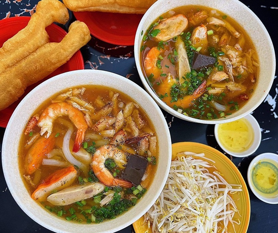 A bowl of Huong crab noodle soup is full of toppings but costs only from 30.000 VND