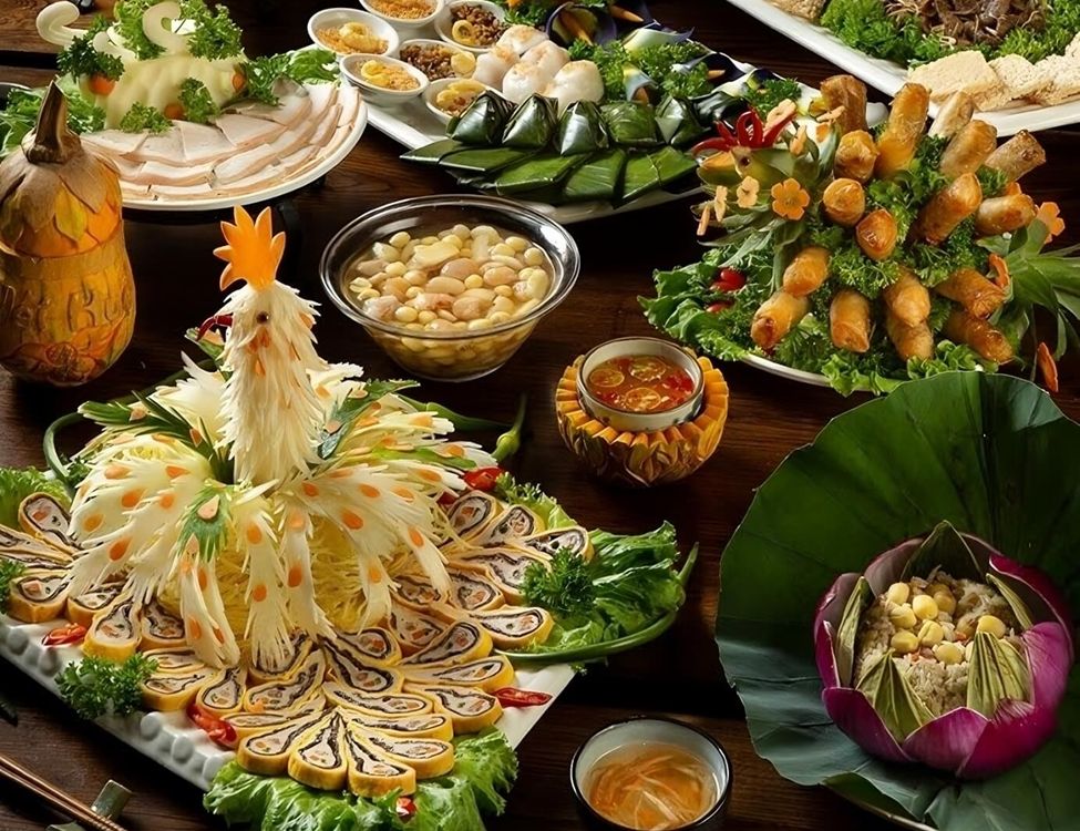 The name of the dish itself exudes luxury and nobility that many people enjoy: Nem Cong Cha Phuong, Tom Ngu Thuyen Rong, Long Hoa Thap Cam, Kinh Ngu Thuong Nguyet, Seafood Soup, Royal Grilled Chicken.