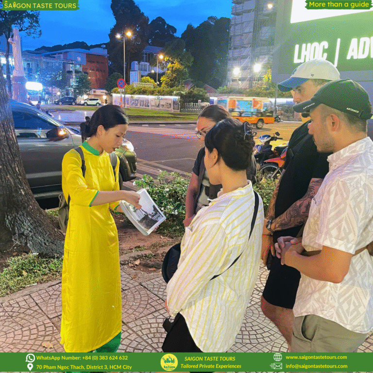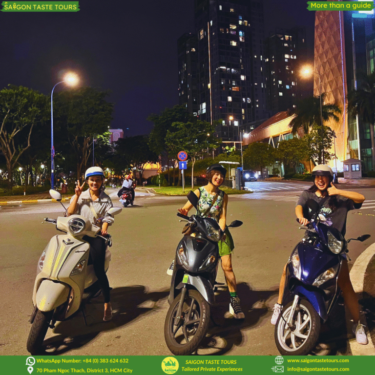 Get picked up right at your hotel and hop on the back of our scooters for a thrilling 4-hour journey through Saigon after dark. Guided by friendly locals, this tour takes you beyond the tourist areas into hidden alleyways, colorful street markets, and the city’s most fascinating districts. From upscale neighborhoods to local hangouts, you’ll see how Saigon transforms at night, vibrant, chaotic, mysterious, and full of life. Whether you’re curious about what happens in the city after sunset or just want to experience its nightlife like a true local, this tour is for you. At Saigon Taste Tours, we go beyond ordinary sightseeing. We provide personalized experiences designed around comfort, safety, and authenticity. Our local experts are more than guides, they’re like friends, sharing hidden gems, local flavors, and true stories of Vietnam.
