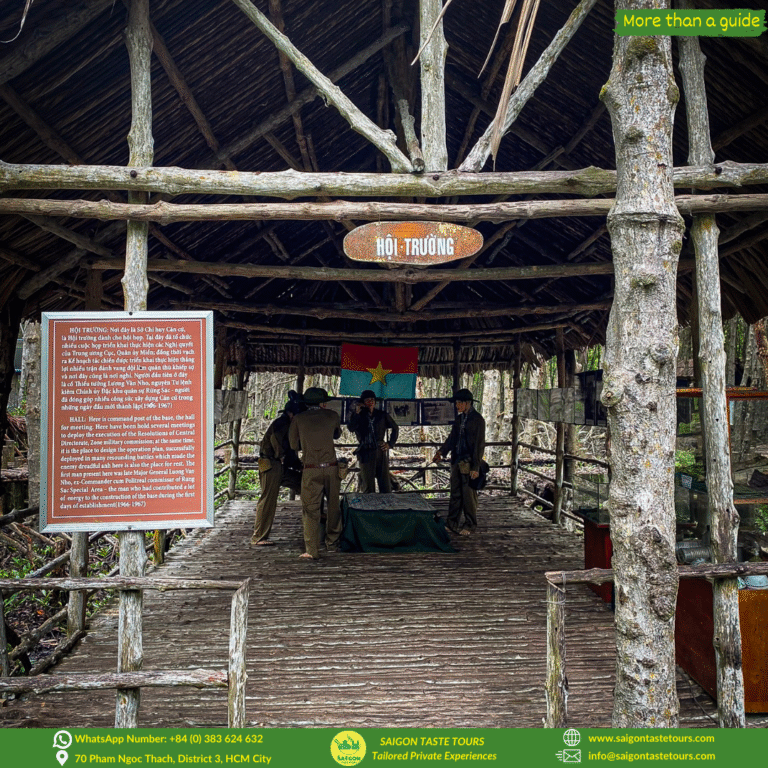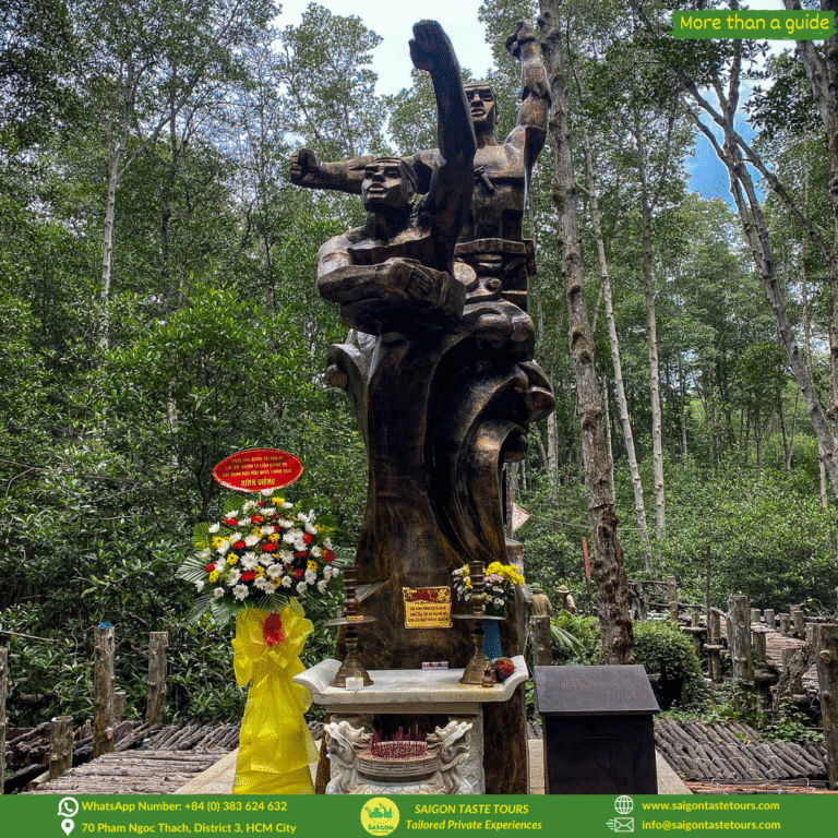 Step into history at the Rừng Sác Guerrilla Base, where you’ll learn about the wartime stories hidden within the mangroves. Midday, enjoy a delicious lunch at a local restaurant, savoring authentic Vietnamese flavors.
