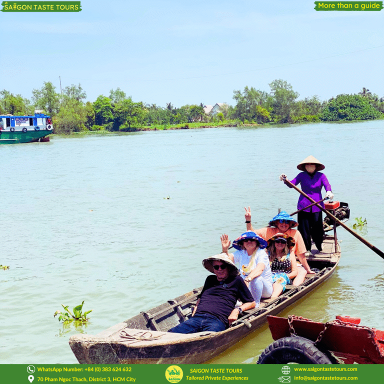 Escape the crowds and experience the less touristy, authentic Mekong Delta in Cai Be. This peaceful day trip takes you through lush orchards, quiet villages, and scenic waterways where local life unfolds naturally. Cruise along the Tien River, visit traditional family workshops, and enjoy freshly made coconut candy and tropical fruits while listening to Southern folk music. On Tan Phong Island, paddle through serene canals, cycle through fruit gardens, and join a local family for a hands-on cooking experience in their garden home. It’s the perfect way to discover the real heart of the Mekong Delta — relaxed, welcoming, and full of local charm.