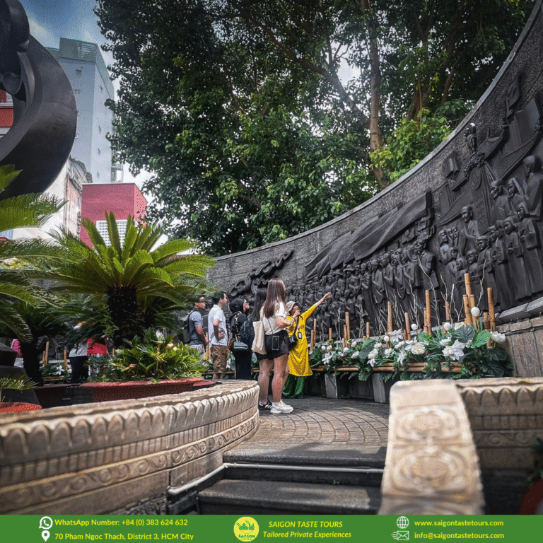 Next, immerse yourself in daily life as we stroll through a flower market and an open-air food market. You’ll pick up a few fun Vietnamese phrases to bargain like a local and enjoy refreshing tropical fruits with sugarcane juice. For a taste of true Saigon flavors, you can choose between a hearty plate of broken rice with BBQ pork or a steaming bowl of local noodle soup.