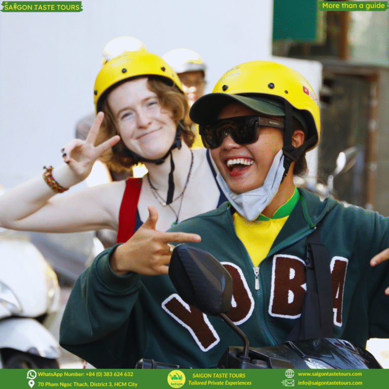 Join our all-female local team dressed in traditional Ao Dai for a one-of-a-kind motorbike tour through Saigon. Discover hidden alleys, taste authentic street food, explore vibrant local markets, and learn about the city’s rich culture – all from the back of a motorbike. It’s more than a tour, it’s a personal journey through Saigon’s heart, led by warm, knowledgeable local women. At Saigon Taste Tours, we go beyond ordinary sightseeing. We provide personalized experiences designed around comfort, safety, and authenticity. Our local experts are more than guides, they’re like friends, sharing hidden gems, local flavors, and true stories of Vietnam.
