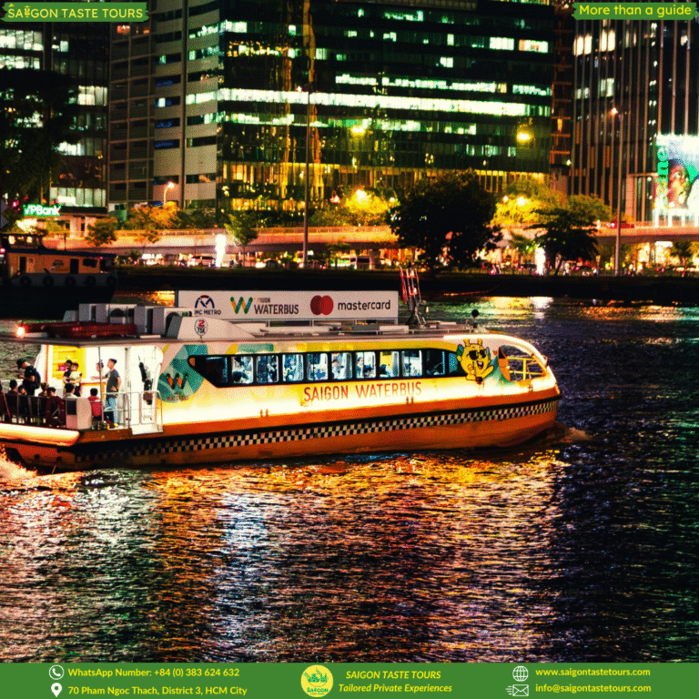 End your day with a relaxing 30-minute Water Bus ride along the Saigon River. Take in views of the skyline, bridges, and everyday city life from a refreshing perspective.