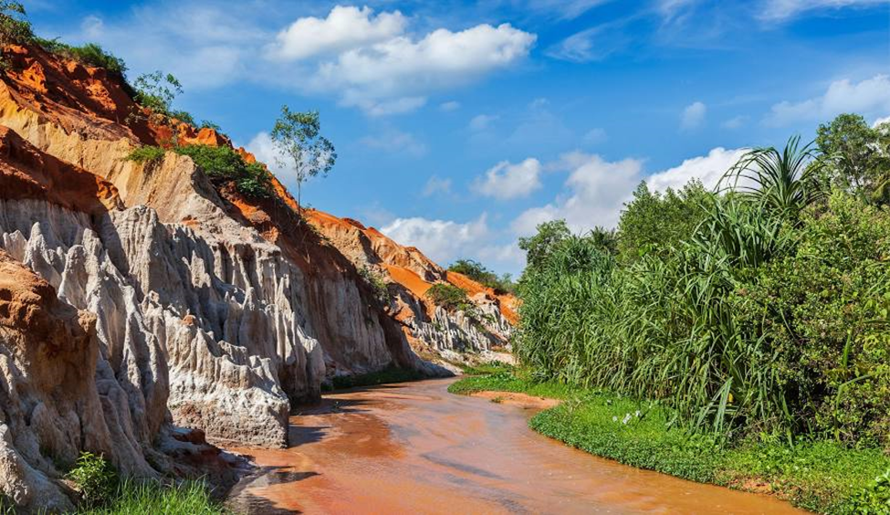 The Fairy Stream (Suối Tiên) presents a distinctive geological spectacle, providing a captivating walking adventure. Situated in Mui Ne, this stream is encircled by strikingly colored dunes and verdant vegetation. As you meander along the stream’s gentle current, don’t forget to bring your camera to capture the surreal and enchanting landscape that unfolds before you.