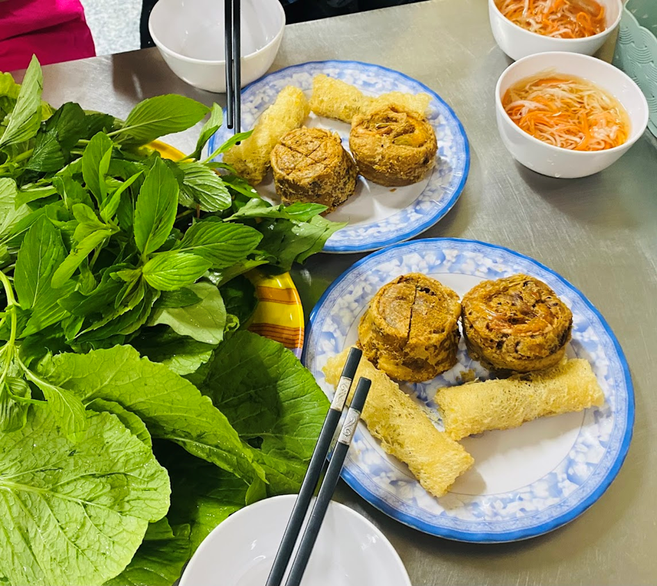 They are topped with a sprinkle of crushed peanuts and scallion oil for added flavor. Accompany the dish with fresh vegetables or rice paper rolls, and don’t forget the signature garlic-chili fish sauce—a perfectly balanced dip that’s known to be addictively good for diners.