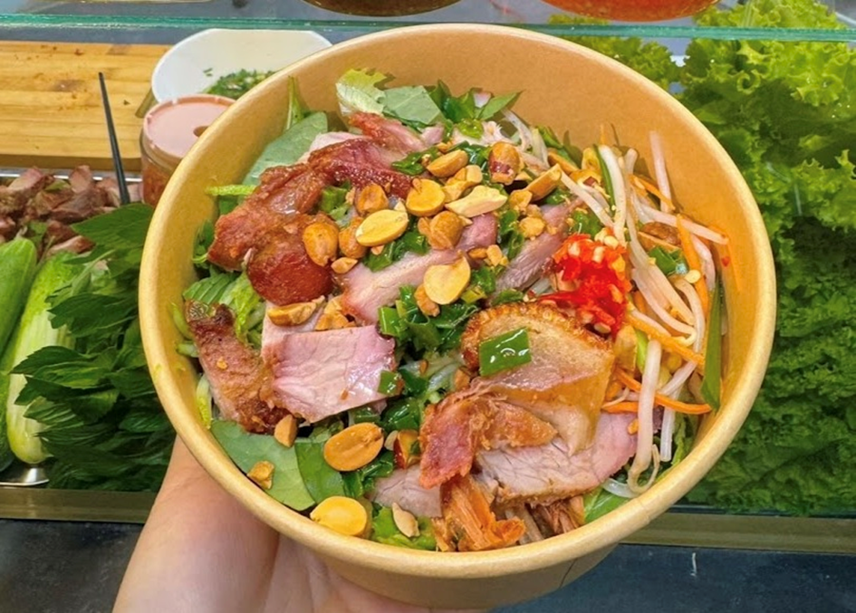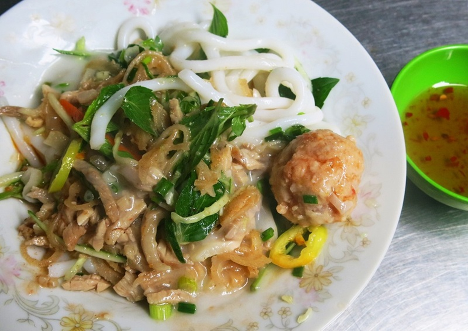 When visiting Can Tho, this dish is an absolute must-try. The softness of the noodles combines perfectly with the richness of coconut milk, the tangy garlic-chili fish sauce, the crunchiness of shredded pork skin, the sweetness of the meat, and the light aroma of fresh herbs to create a truly delightful dish.